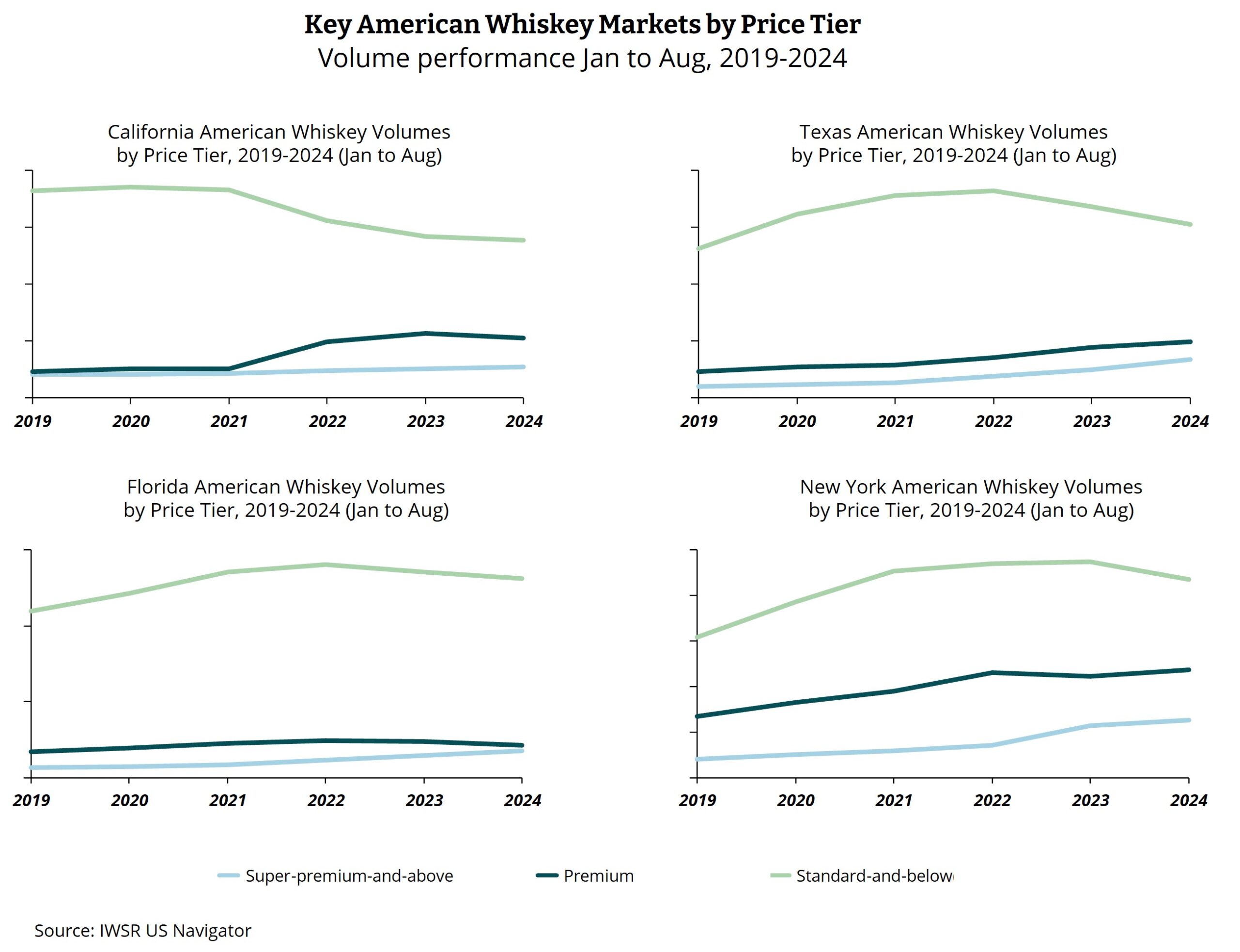 Signs of softening demand appear across states that are in the top 10 largest domestic American Whiskey markets.
