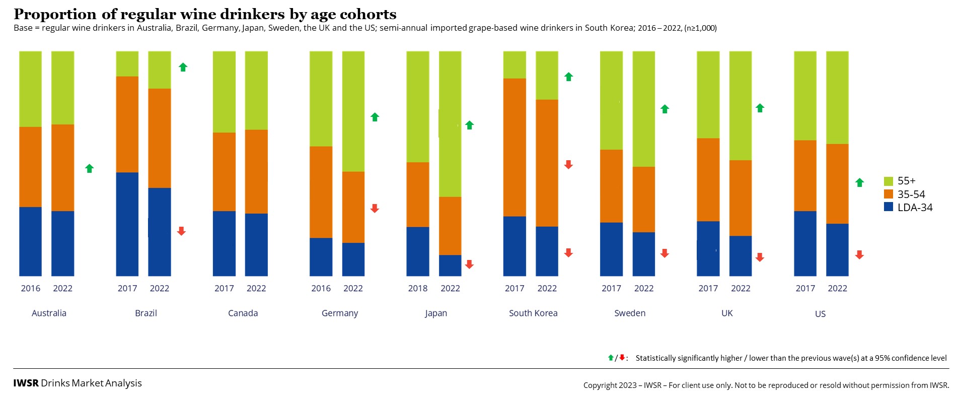 Moreover, in many core markets, the number of adults who are classified as regular wine drinkers is continuing to fall, with the decline at its greatest in the LDA-34 segment.