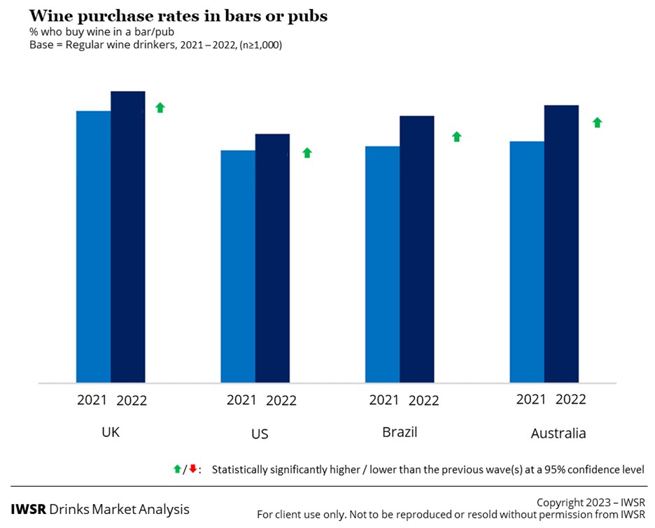 While economic uncertainties are leading wine consumers in many markets to cut back on discretionary spend (especially in the on-trade), regular wine drinker numbers have bounced back, driven by the return of some younger adult consumers to the category as the on-trade has reopened.