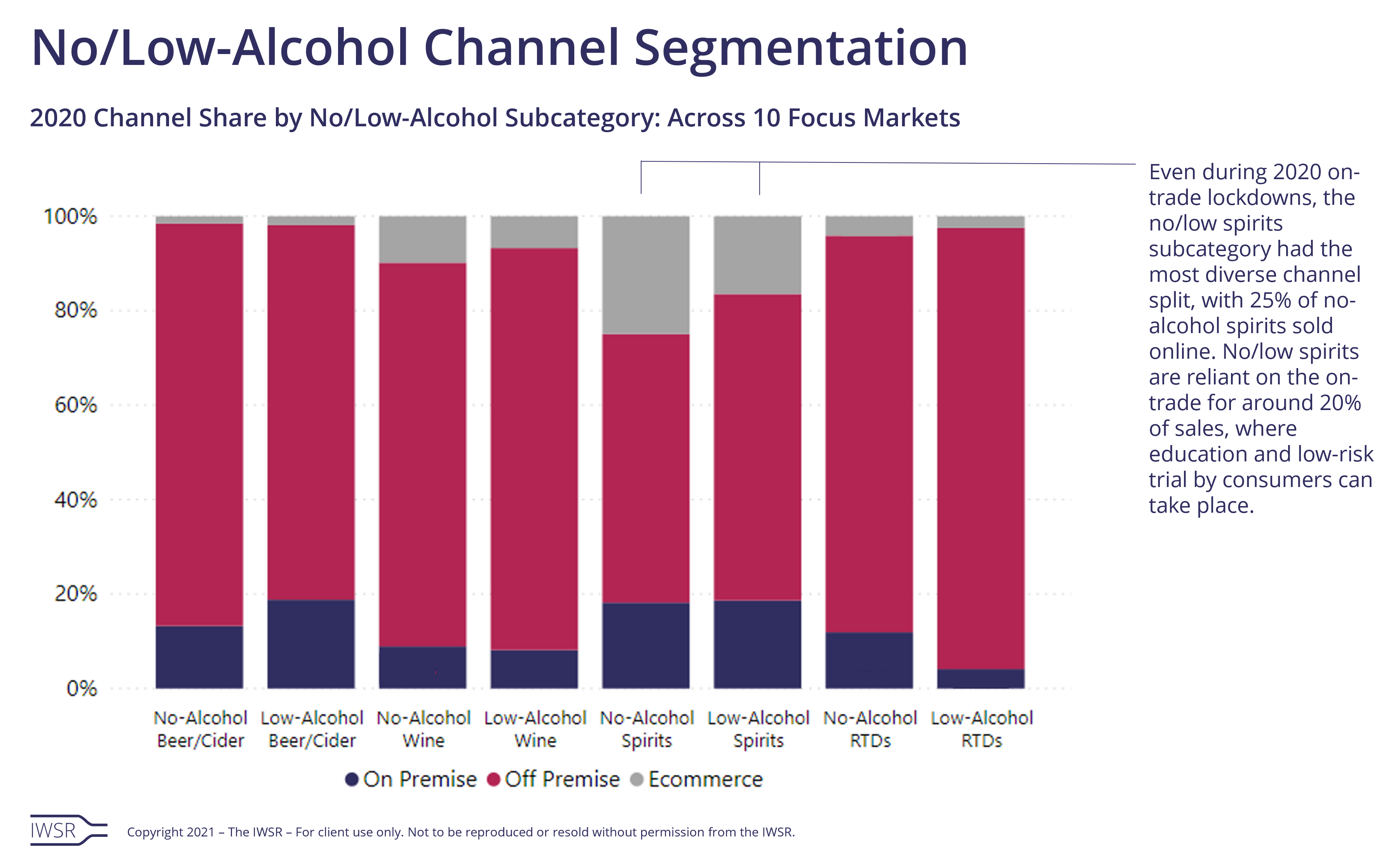 IWSR analyses how channel distribution and marketing plans for no/low spirits may change as the on-premise returns in key markets